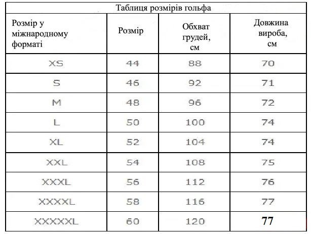 | Вид виробу | Гольф |